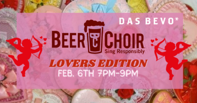 Grab your beer loving, lovers and friends! If you’ve never been to Beer Choir it’s not a performance, but a social singing experience open to all no talent required! Grab a beer and a bite and we’ll lead you through a couple hours of hilarious drinking songs and games. Bar and kitchen open at 5, singing starts at 7. FREE admission. Prost!