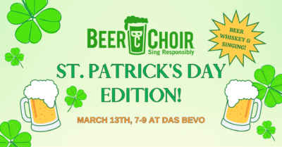 Beer Choir in the Bierhall! If you’ve never been, Beer Choir is not a performance. It’s a social singing experience open to all, no talent required! Grab a beer, grab a seat, and we’ll lead you through a couple hours of hilarious drinking songs and games.