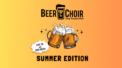 Beer Choir! If you’ve never been, Beer Choir is not a performance. It’s a social singing experience open to all, no talent required! Grab a beer, a bite and a seat, and we’ll lead you through a couple hours of hilarious drinking songs and games. This will be a fun one in honor of Summer. Bar and kitchen open at 5, singing starts at 7. FREE admission. Prost!