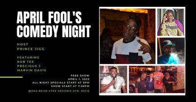 Join host Prince Jigg, and some of St. Louis’s best comedians for a night of laughs. Bar opens at 5, comedians hit the stage at 7:30. FREE SHOW. Food and drink specials all night!!