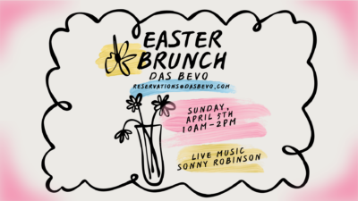 Join us for a fun, casual brunch with family and friends. We’ll be serving up delicious brunch favorites and great drink specials from 10am–2pm. Please note, this is not a buffet brunch. Live music from Sonny Robinson. Reservations are encouraged as it’s a holiday. Please email reservations@dasbevo.com. Cheers!