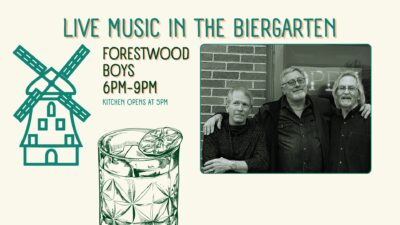 Join us in the biergarten for a night of live music with the Forestwood Boys, dinner, and drinks! Our kitchen opens at 5pm, grab something tasty and stick around for music 6pm-9pm. We can’t wait to see you!