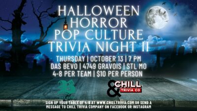 Join us for eight rounds of trivia celebrating Halloween and Horror! If you enjoy all things Halloween, come out and compete with or against friends and family over categories including movies, music, television, literature, social media and more!