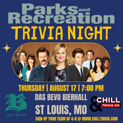Join us as we celebrate Leslie Knope and the rest of the Parks & Recreating Department of Pawnee, IN! Compete with or against friends and family over eight rounds while enjoying an amazing food and drink menu provided by Das Bevo.