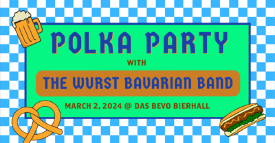 POLKA PARTY!! If you’ve never heard the Wurst Bavarian Band, now is your time. Grab a bite and a beer…or two, and come listen to them polka in the Bierhall. We open at 5, the Wurst Bavarian Band plays from 7-9. Free show. Prost!